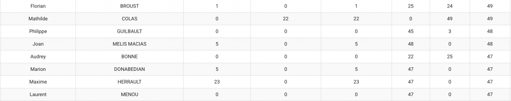 Notons l’excellente seconde place de L’AS DESBOIS qui a tardé à pouvoir s’exprimer mais qui confirme également sa récente montée en puissance, lui qui a toujours été estimé par son entourage.
