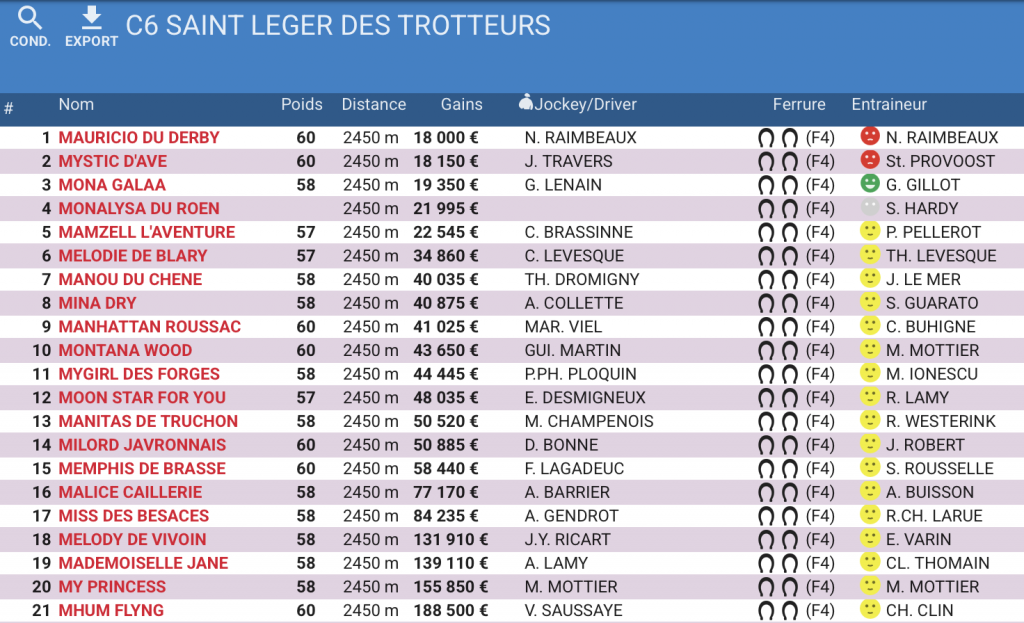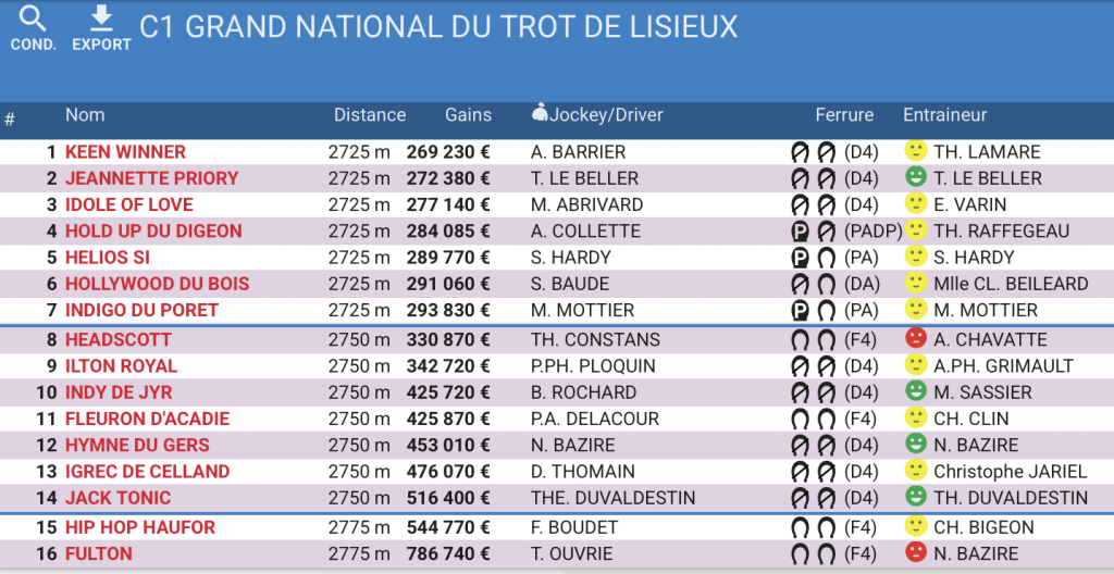 ** A l’issue des forfaits du jour, ils sont encore 21 engagés dans le Saint Léger des Trotteurs (G1) qui sera l’épreuve principale de la réunion de Samedi sur l’hippodrome de Caen