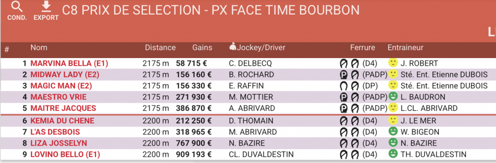 ** Moment fort de cette réunion de Samedi, le Prix Ephrem Houel (G2) ne rassemblait pas les meilleurs 4 ans de la génération mais tout de même du beau monde avec la présence de MAGIC NIGHT (Ph Allaire) ou encore de MAITRE JACQUES (LC Abrivard).